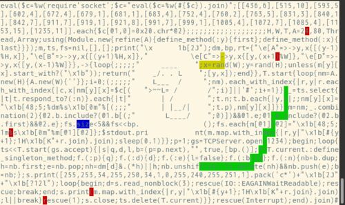 おもしろかったらStar https://github.com/hanachin/quine-snake おもしろかったらして telnetで対戦できるQuineなsnake gamehttps://t.co/hYCRTGdtSE pic.twitter.com/aziv7ai6yB— 𝓜𝓲𝔂𝓪𝓰𝓲 (@hanachin_) August 4, 2019 複数プレイヤーいるとこういう感じ …